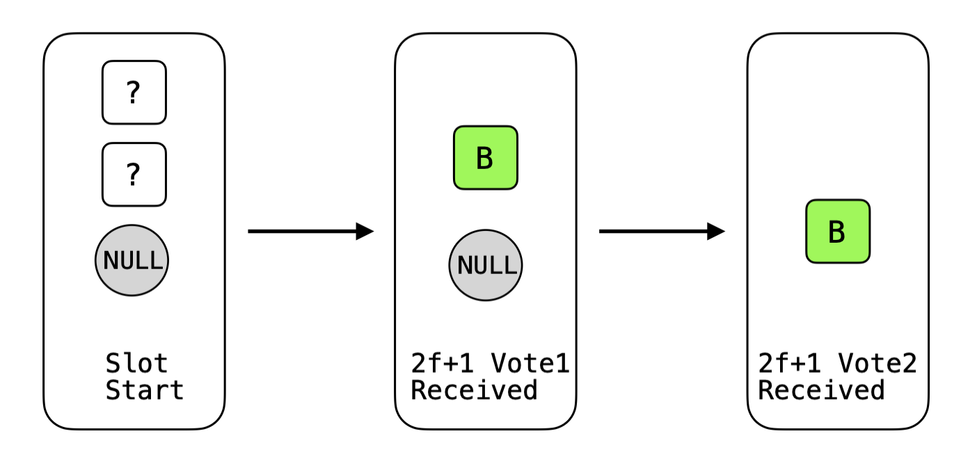 2f + 1vote1forB, the slot's outcome is "Bor empty" (no conflicting block can also collect2f + 1). - After collecting